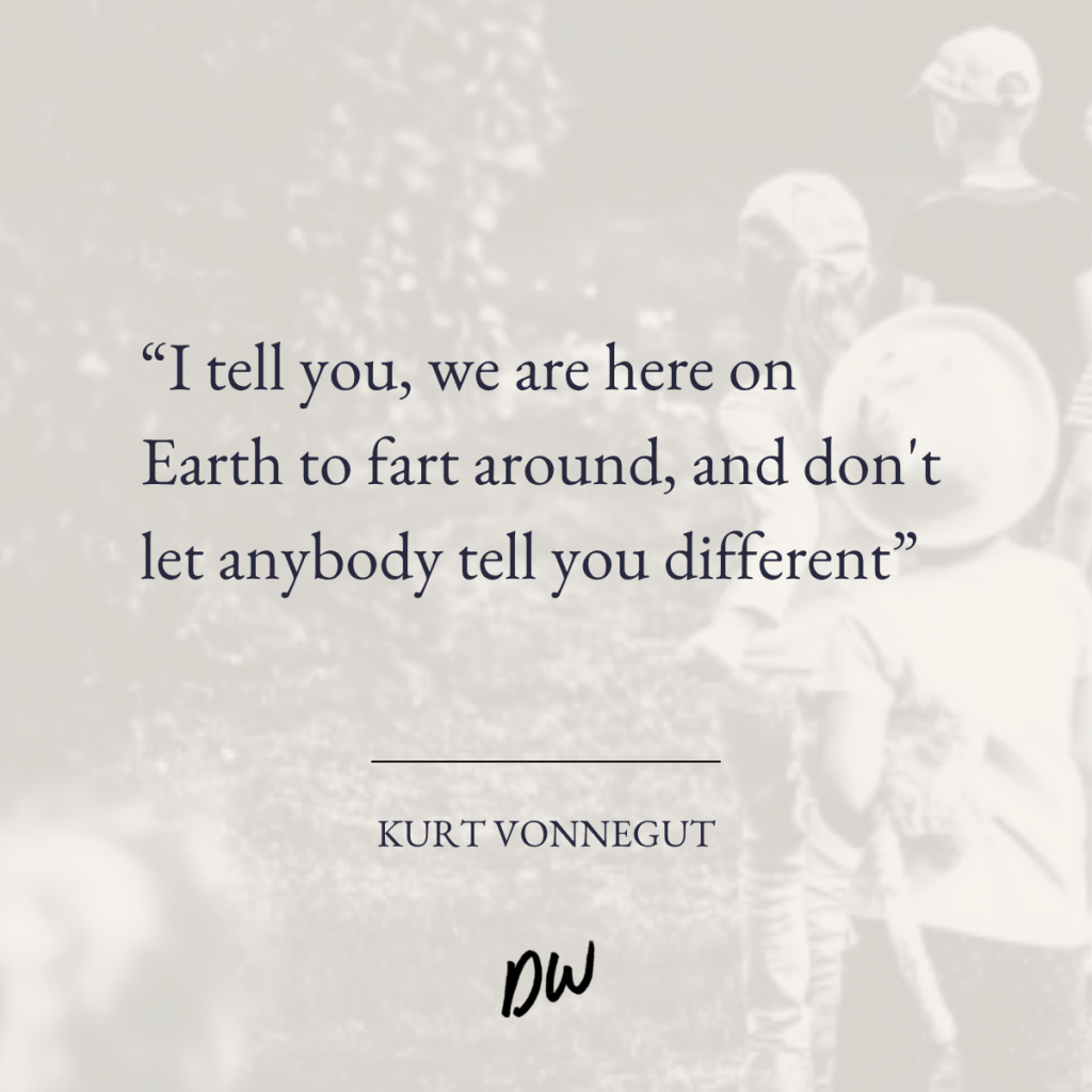Kurt Vonnegut once said: “I tell you, we are here on Earth to fart around, and don’t let anybody tell you different.”